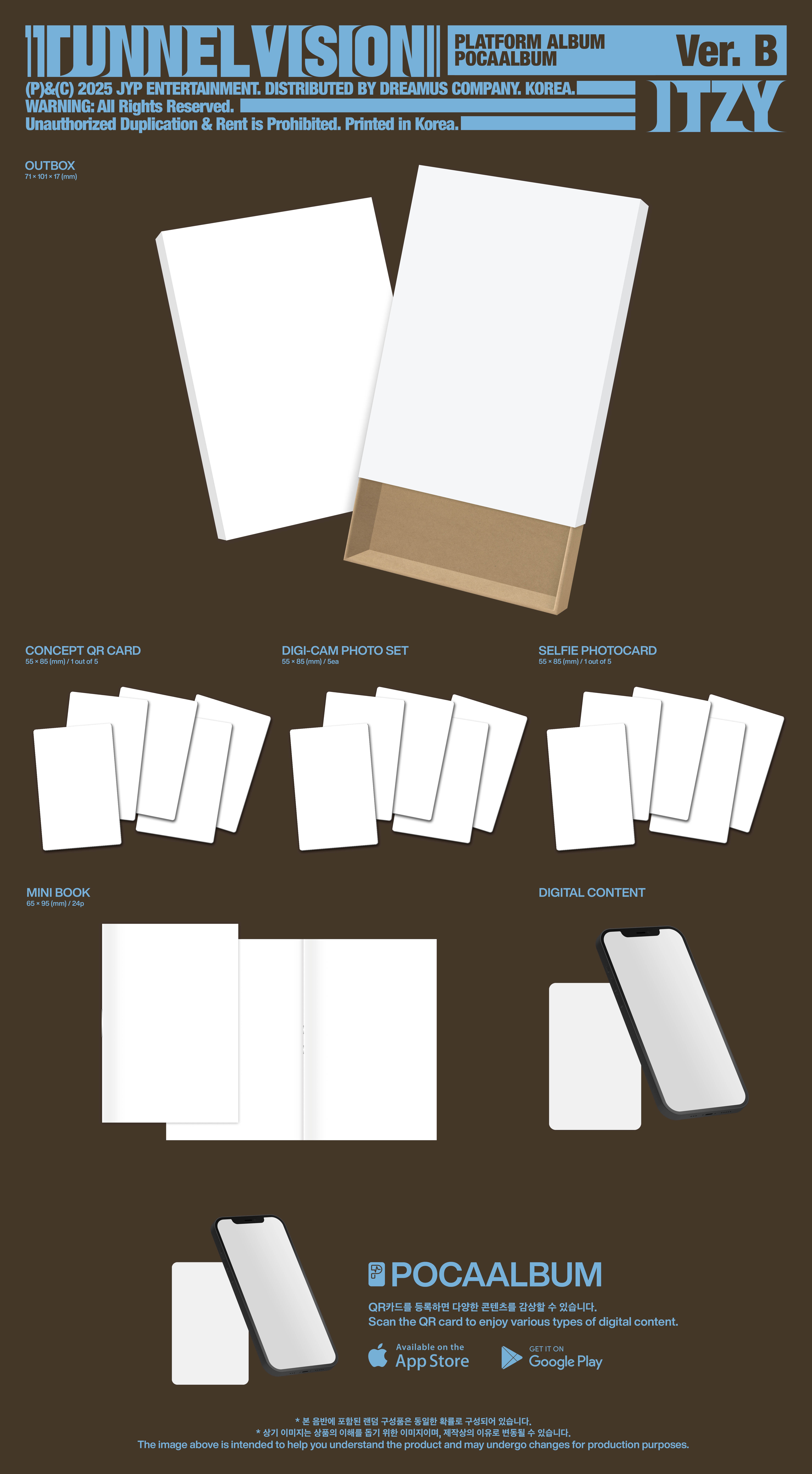 ITZY JAPAN OFFICIAL SHOPおよび、JYP JAPAN ONLINE STORE限定特典A5サイズポストカード2枚セット付きの商品となります。
